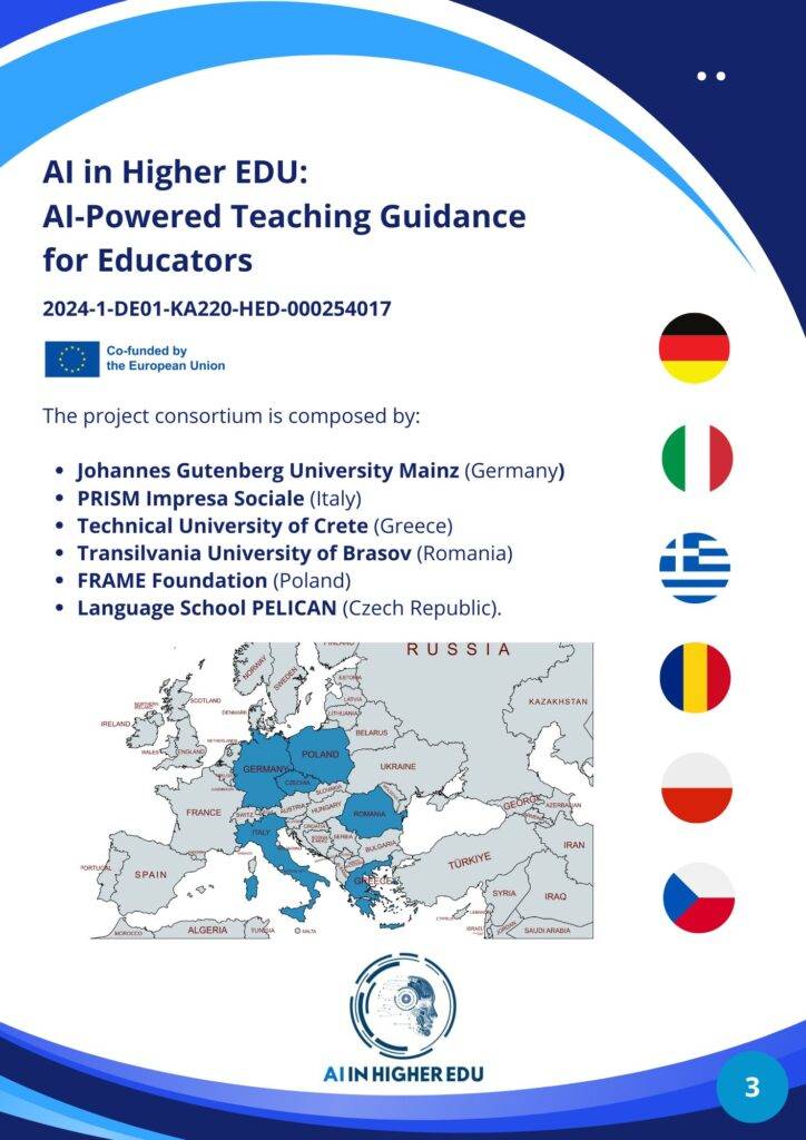This international collaboration allows the project to reflect diverse educational systems, technological readiness, and cultural contexts, contributing to a unique and interconnected European perspective on AI in higher education.