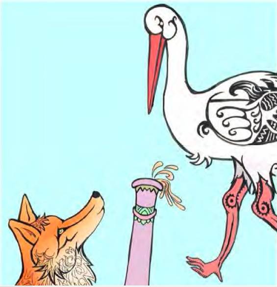 Tradiční KURDSKÁ pohádka. Jednoho dne se liška rozhodla pozvat svého přítele čápa na oběd. Na druhý den natěšený čáp přišel ke své přítelkyni, ale zjistil, že ho mazaná liška obelstila. Čáp, celý rozmrzelý, se vrací domů s plánem, jak se lišce pomstí… Příběh skýtá ponaučení: „Kdo jinému jámu kopá, sám do ní padá.“