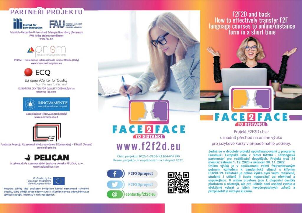 Stejně na tom byly i kurzy jazyků. Právě jazykovým kurzům chce do budoucna ulehčit přechody do online výuky nový projekt F2F2D and back neboli Face to Face to Distance and back.